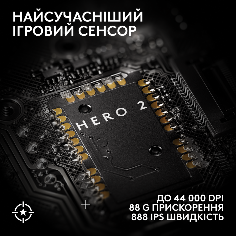 Вона оснащена точним сенсором HERO 2, надійною технологією LIGHTSPEED з частотою опитування 1 кГц (з можливістю оновлення до 8 кГц) та інноваційними перемикачами LIGHTFORCE.